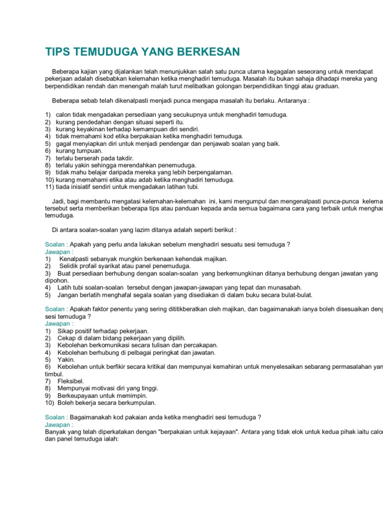 Di bawah ni adalah contoh soalan lazim temuduga yang sangat normal + biasa + cliche. Mari semak antara soalan lazim yang akan ditanya ketika temuduga serta cara menjawab secara profesional. Soalan lazim ptm soalan soalan.pdf. Untuk sesi temuduga ptd m41. Nyatakan satu contoh di mana anda telah menonjolkan bakat kepemimpinan semulajadi dalam melaksanakan sesuatu aktivit atau program yang besar dan berjaya.