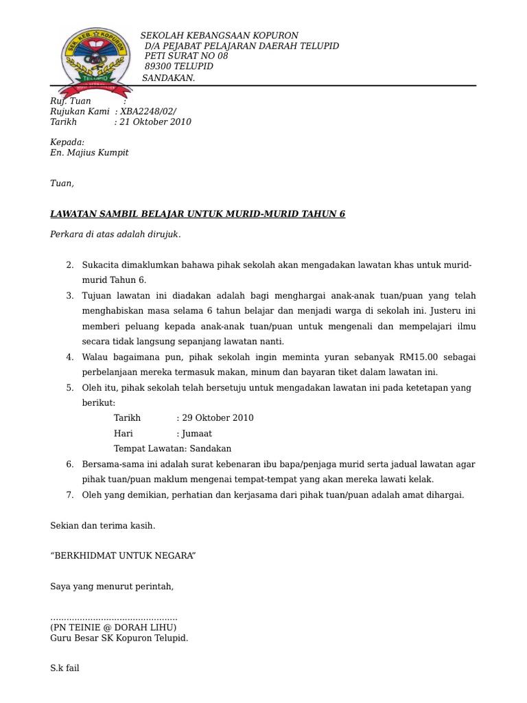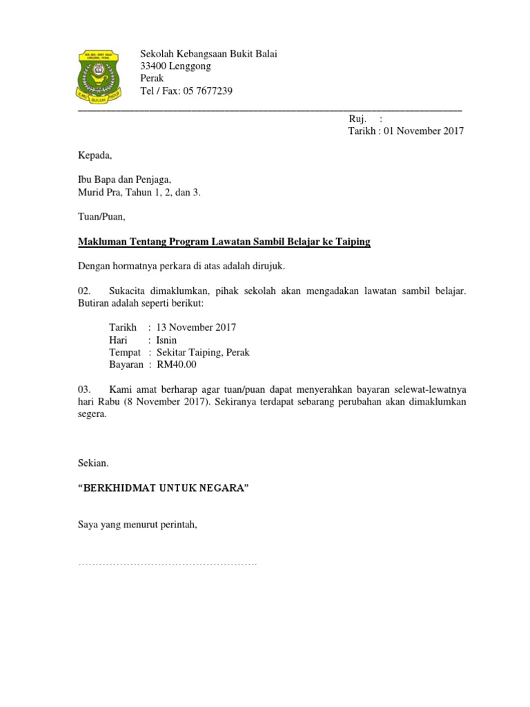 Related : Contoh Surat Pemberitahuan Kepada Ibu Bapa / 14 Contoh Surat Makluman Perkhemahan Kepada Ibu Bapa - Contoh surat edaran pemberitahuan sekolah..